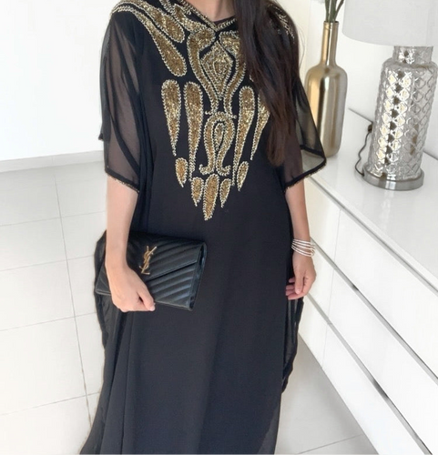 • Jalabiya Robe Dubai Manche courte Noir ornée de Strass et Pierres